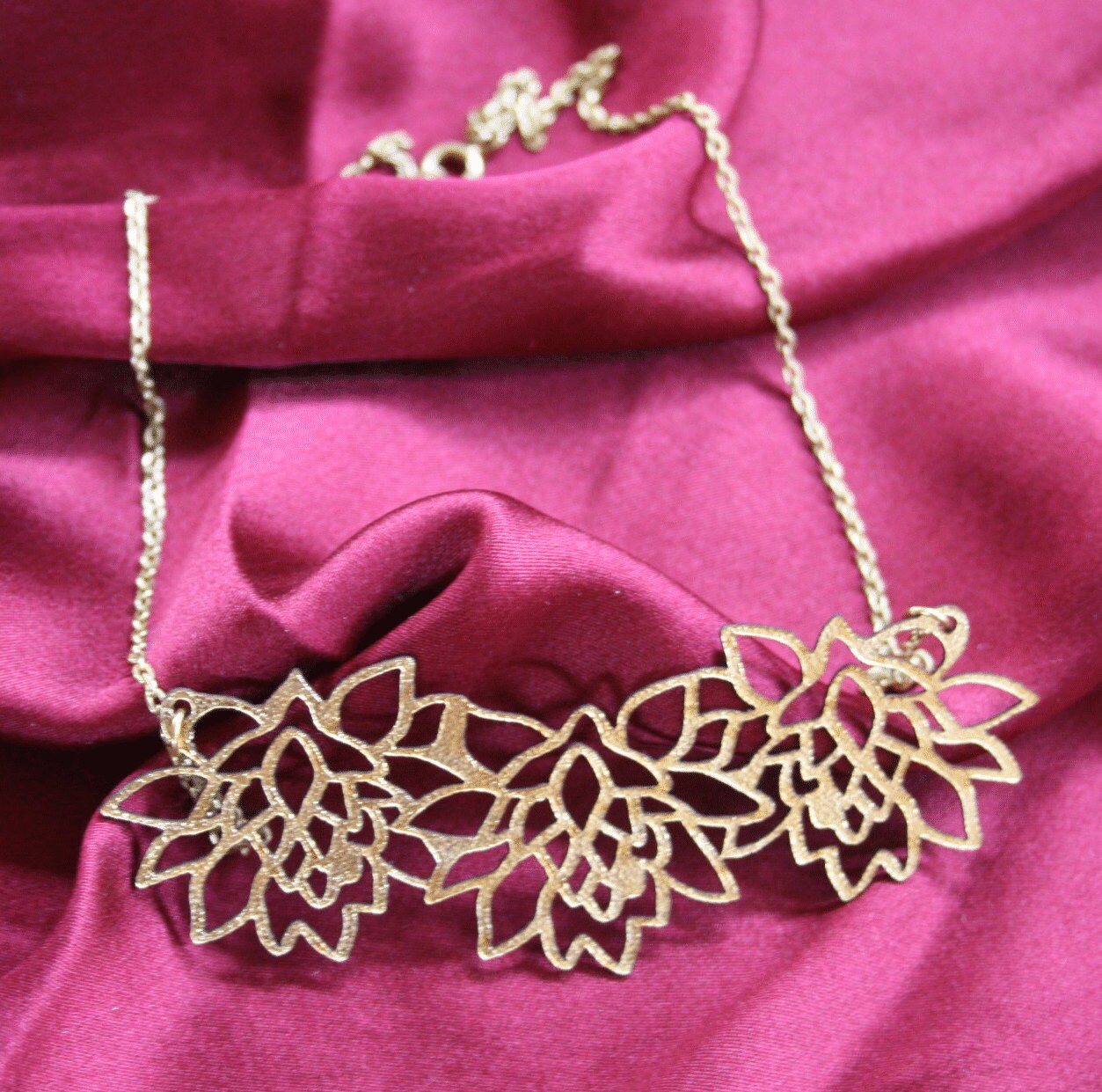 Vintage lace inspired laser cut necklace made from kangaroo leather offcuts and an upcycled gold plated chain.