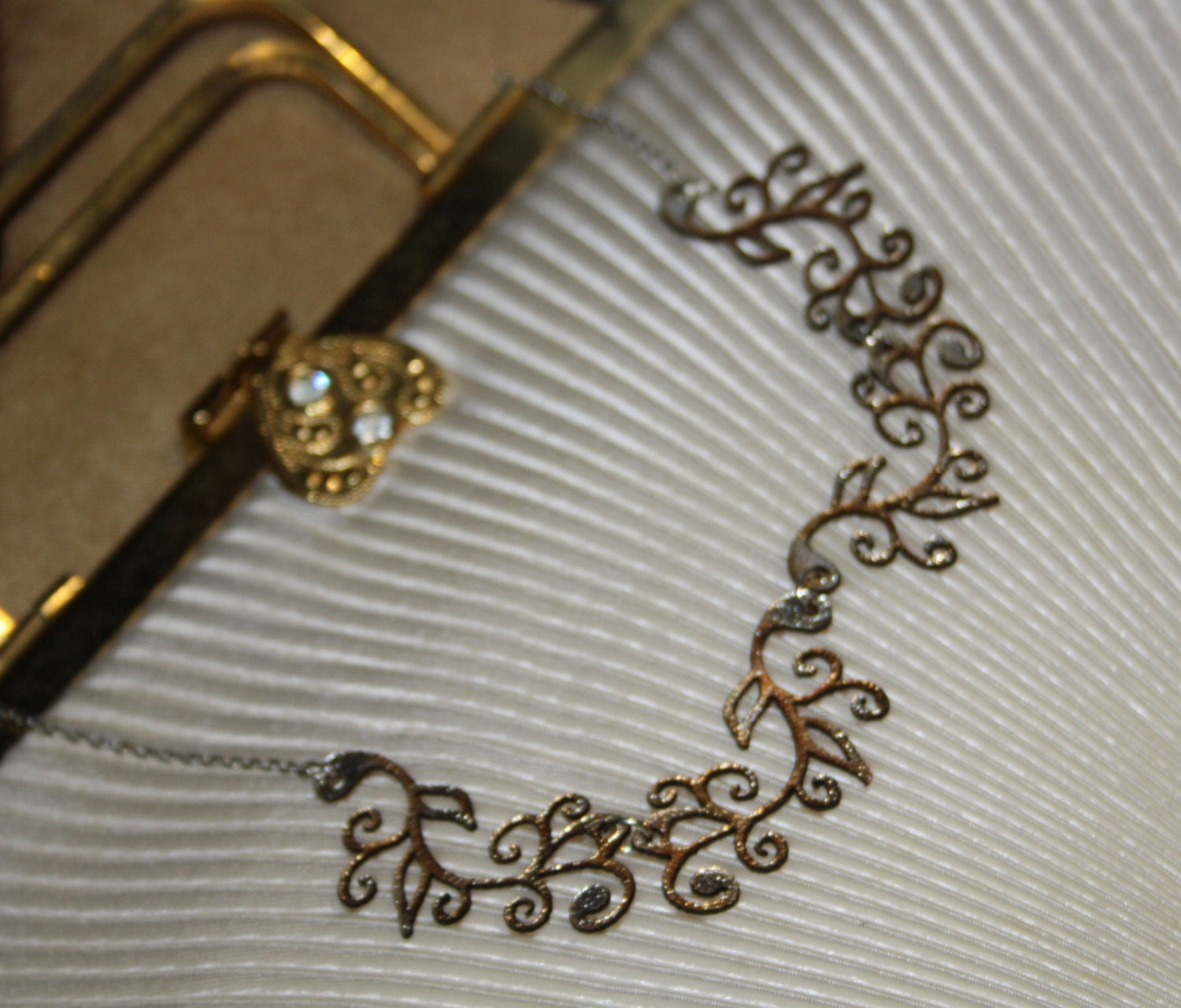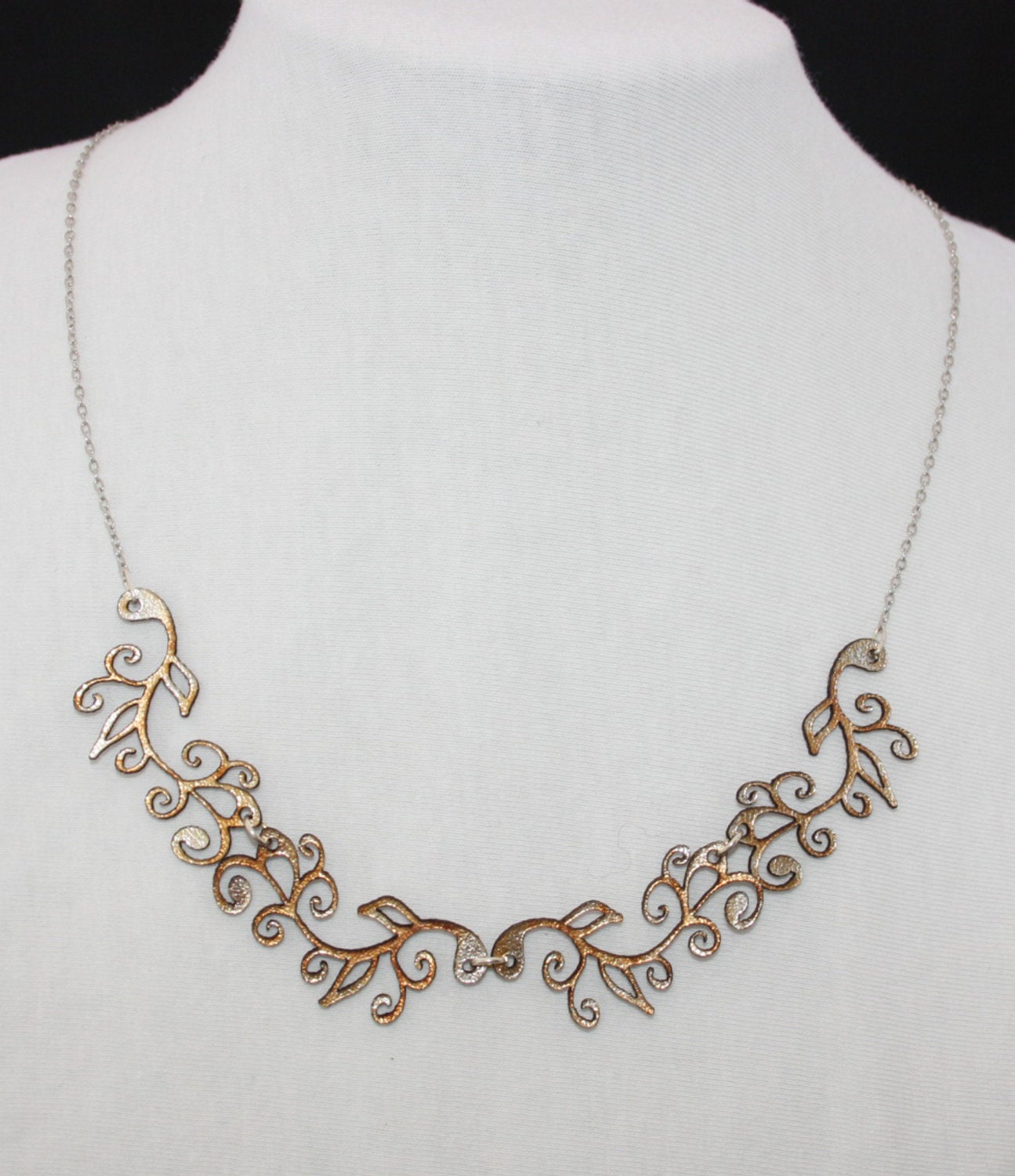 Silver/gold laser cut leather Art Nouveau necklace