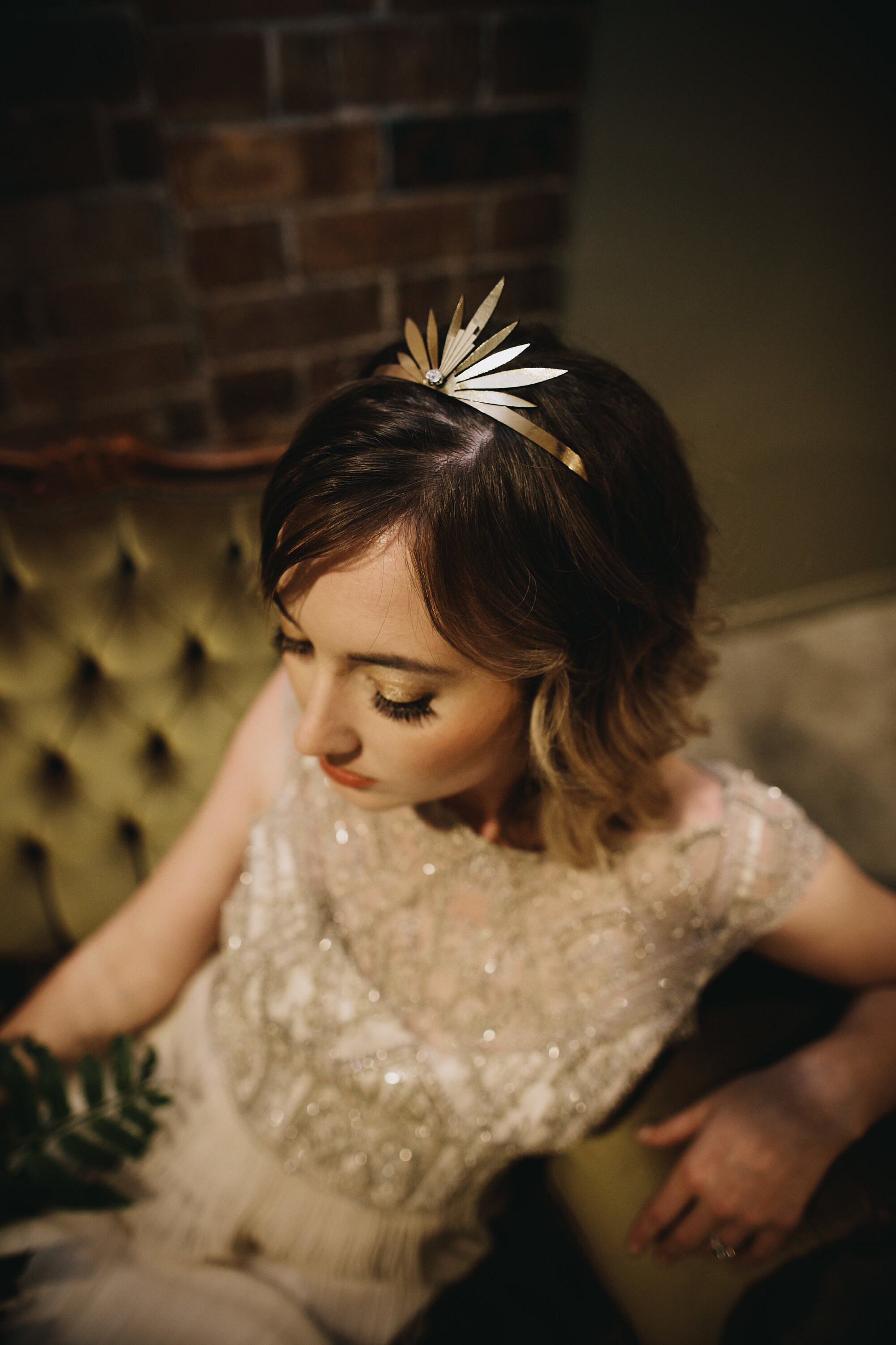 Stunning Art Deco inspired laser cut kangaroo leather Tiara, with angel and diamonte detail.