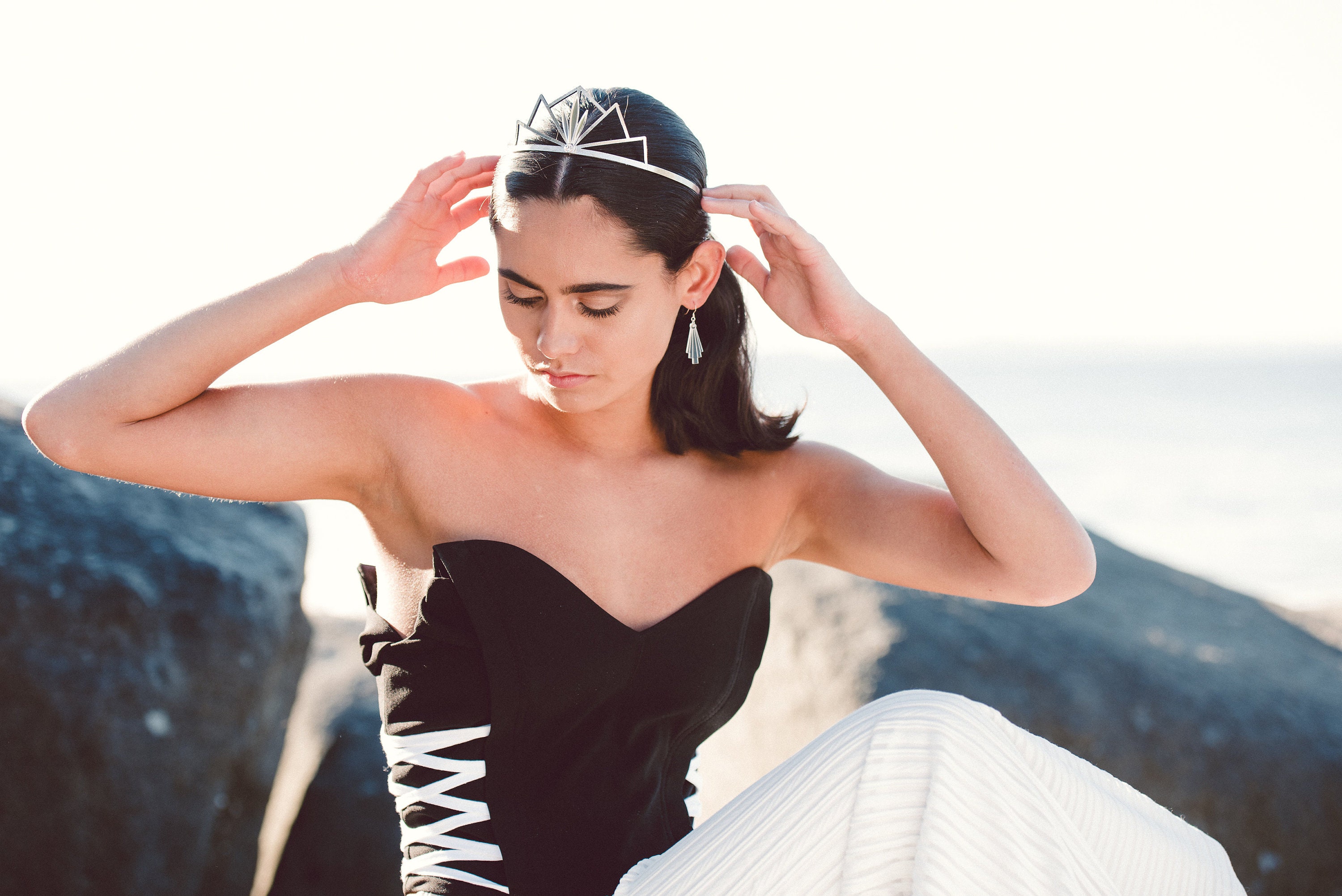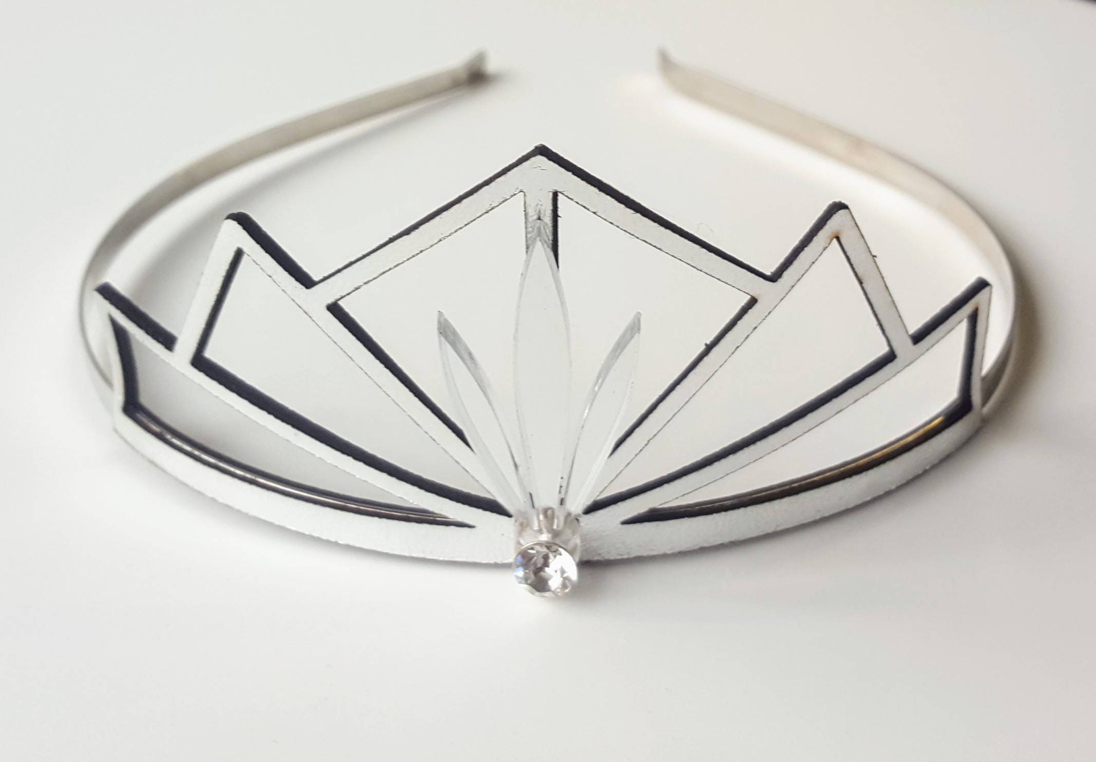 Stunning tiara made from silver kangaroo leather, silver mirror perspex and a diamante detail. Art deco style and one of a kind! Looks amazing on!