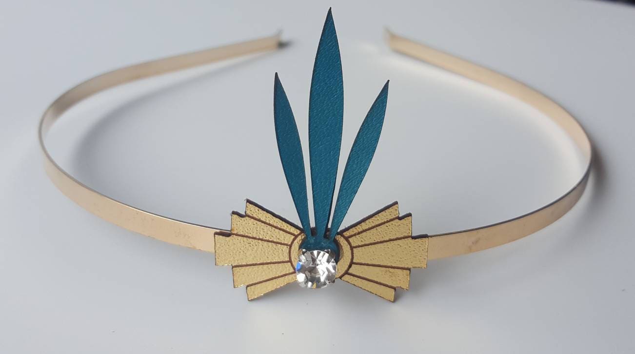 Limited edition Art Deco inspired Tiara with laser cut kangaroo and diamante detail. Wonderful for bridesmades and available in many colours - check out the colour swatch photo to see choices. This photo shows teal and gold but you can request any colour combination with a customised order request - just select other for colour and message me with your choice.